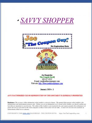 Over 210 pages of money-saving tips! Dozens of topics covering many subjects that will help you save money. The updated booklet features thousands of Joe's money-saving tips. It includes over two thousand money-saving web-sites. Great for beginners or veteran savers.